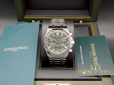 | Audemars Piguet 愛彼 AP錶 Royal Oak 皇家橡樹系列 不鏽鋼材質 26240ST 飛返計時功能 26240ST.OO.1320ST.08 軍綠色面盤 2025年保單 自動上鍊 |