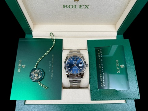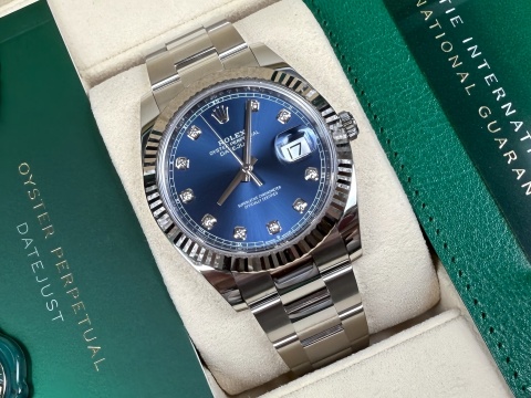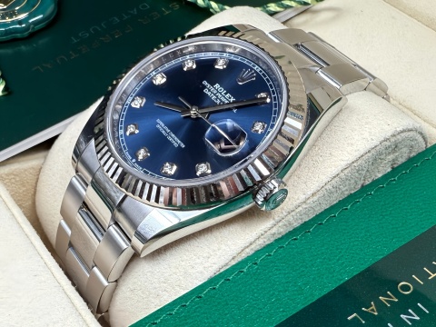 ROLEX 勞力士 DATEJUST II 126334G 蠔式日誌 126334 不鏽鋼材質 白K金三角坑紋圈勞力士 藍色放射面盤 鑽點時標 2024年保單 新式保卡 41MM |