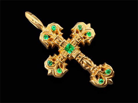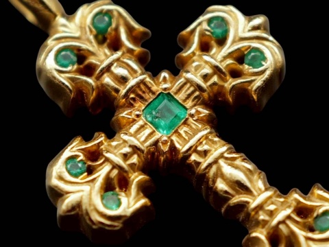 Chrome Hearts 22K CHARM FILIGREE TINY 火焰十字 綠寶石