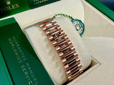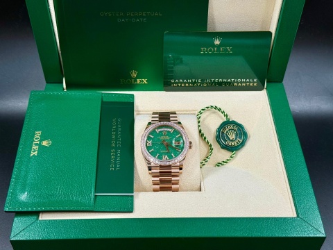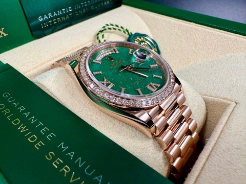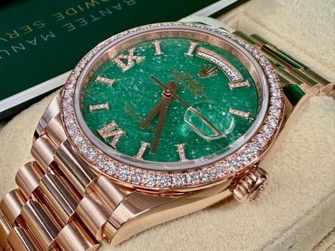 ROLEX 勞力士 Day-Date 36 蠔式 星期日曆型 128345永恆玫瑰金 DD36 沙金綠面盤 2024年保單 新式保卡 自動上鍊 36mm |